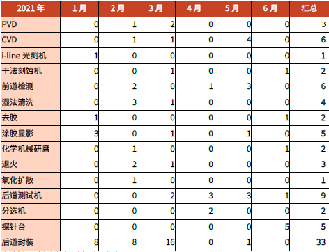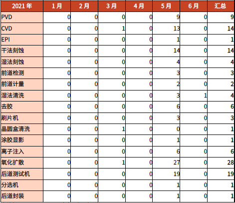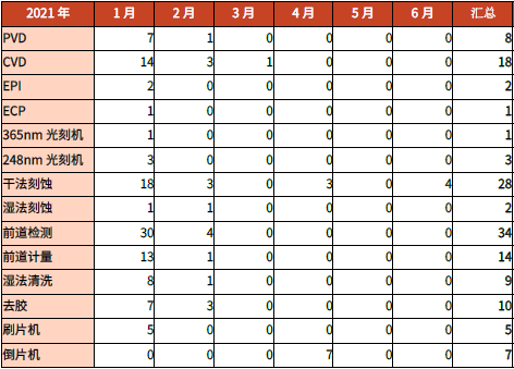 2021年6月份单月北方华创、华海清科、屹唐半导体等优质国产厂商就获得了多个设备订单,引领设备国产化。